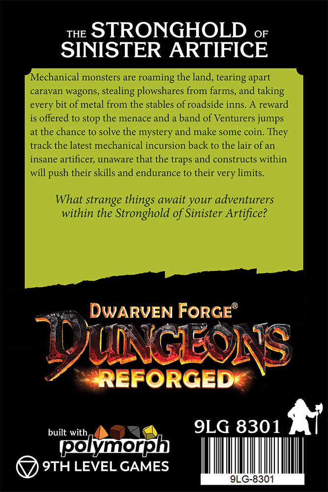 Mechanical monsters are roaming the land, tearing apart caravan wagons, stealing plowshares from farms, and taking every bit of metal from the stables of roadside inns. A reward is offered to stop the menace and a band of Venturers jumps at the chance to solve the mystery and make some coin. They track the latest mechanical incursion back to the lair of an insane artificer, unaware that the traps and constructs within will push their skills and endurance to their very limits.